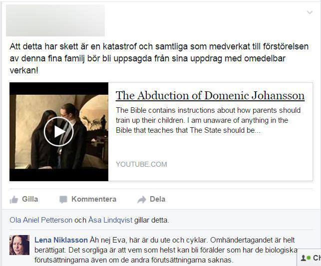 Jag behöver säga följande på så vis som jag gör, det vi LVU föräldrar upplever för det mesta, är sånt man upplevde under krigstiden, Du befinner Dig i ett hjälplöst krig, där barnet är kidnappat, och några vänner finns det inte att få kontakt med som bestämt att det skall vara så. Söta som bara den i media osv, men grymma som synden när dörren stängs o fantasin väller, som senare blir verklighet.